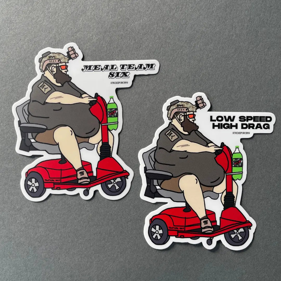 Elite Meal Team 6 operator with an all-terrain vehicle for rapid response. This hero’s call sign is “Big Mac 3.” If he's stacking up on your fast food joint, consider yourself well done. Our tactical stickers are perfect for your gun safe, gun case, ammo cans, rifle mags, truck, laptop, workbench, water bottle, or any other suitable surface for a sticker. Showcase your rad taste.